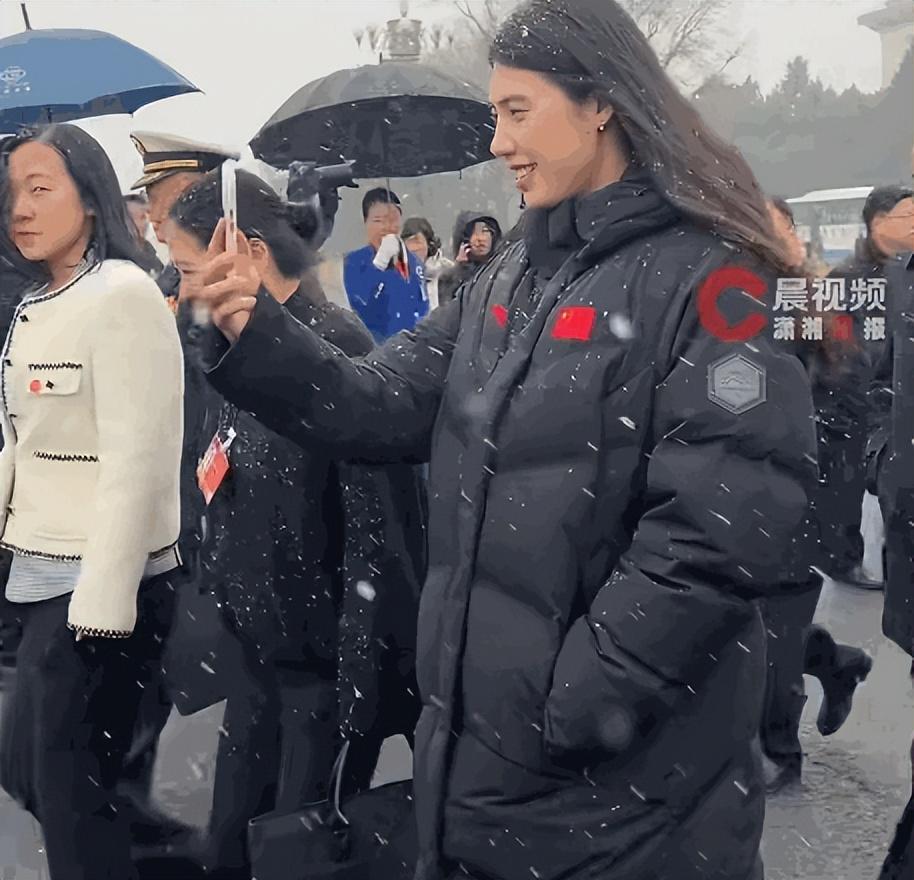 参与会议当天北京大雪纷飞,在进场时张雨霏面对周围的镜头也没有任何拘谨感,甚至还直接拿起手机自拍。